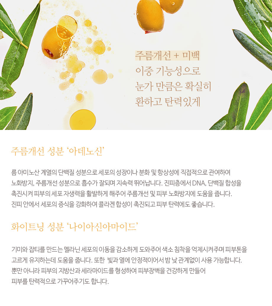 - Enhancing Elasticity and Brightness: Delivers essential ingredients for whitening and wrinkle improvement, making the eye area more elastic and luminous.