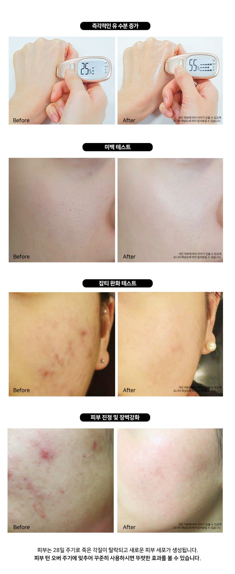 - The efficacy of our product has been proven through human application testing, revealing significant improvements:
