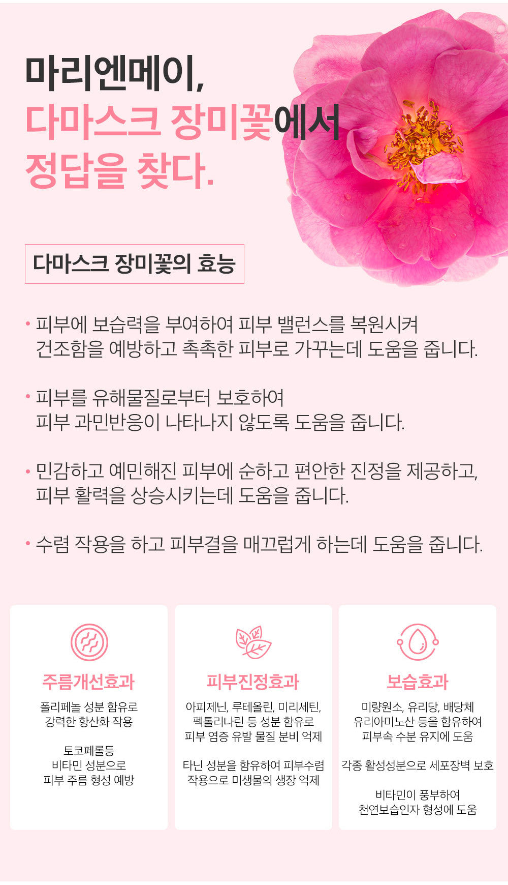 - A moisture layer (comprising Damask Rose Water, Collagen, Hyaluronic Acid) that deeply penetrates the skin.