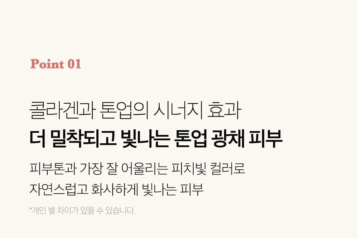 Experience the synergy between collagen and tone-up effects, resulting in a more adherent, luminous skin tone. This sunscreen features a peachy hue that perfectly matches your skin tone for a naturally radiant and bright complexion.