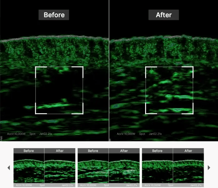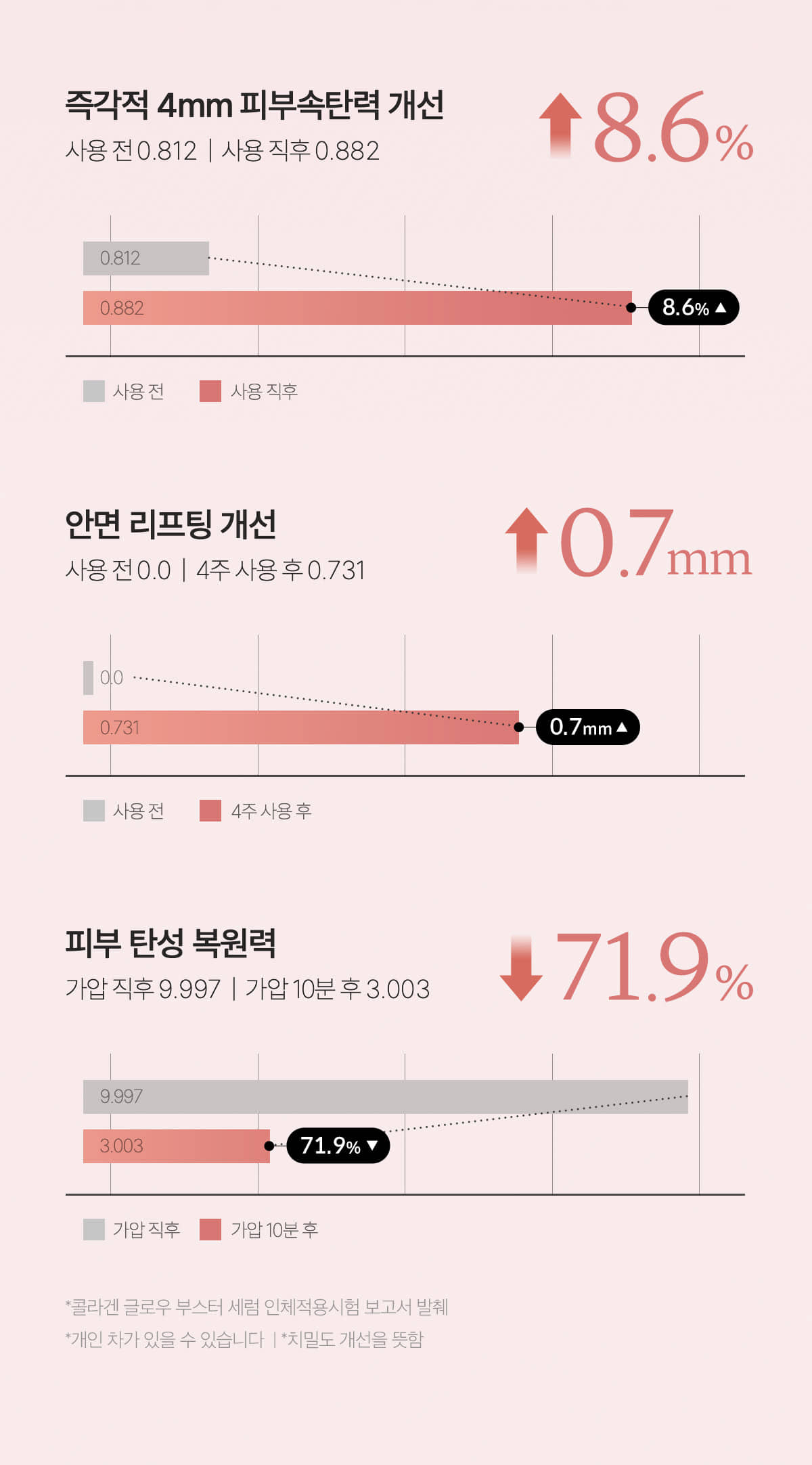 Feel the immediate impact of density improvement upon application, with tangible changes in skin density and a notable improvement in skin elasticity and lifting. Our studies show a restoration of skin elasticity by 71.9%, achieving a density filling effect that truly delivers with just one application.
