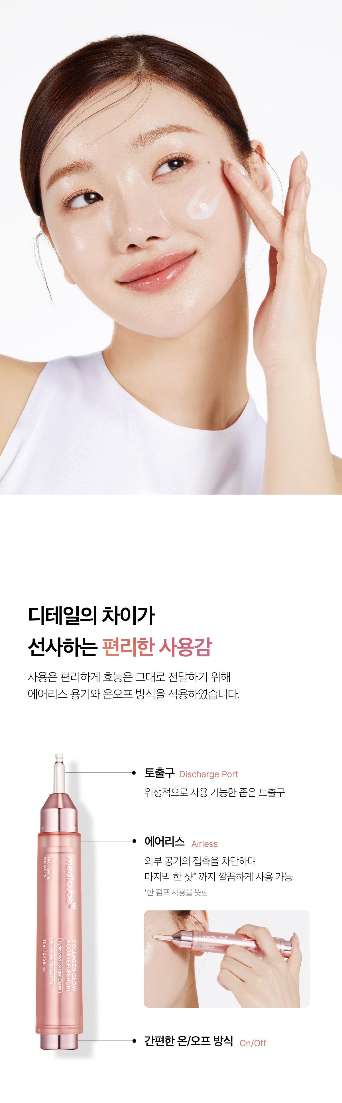 Designed for ease and hygiene, the serum features an airless discharge port, preventing contact with external air and ensuring cleanliness until the last use. The container is equipped with a simple twist open/close mechanism for hassle-free application.