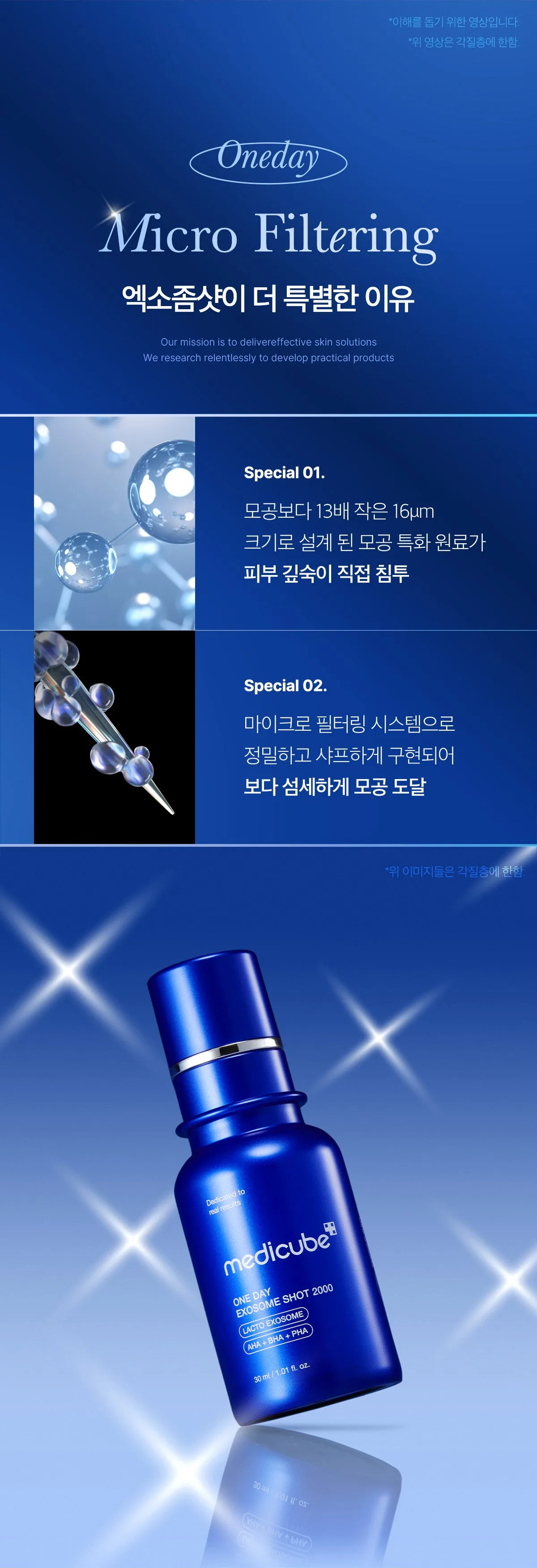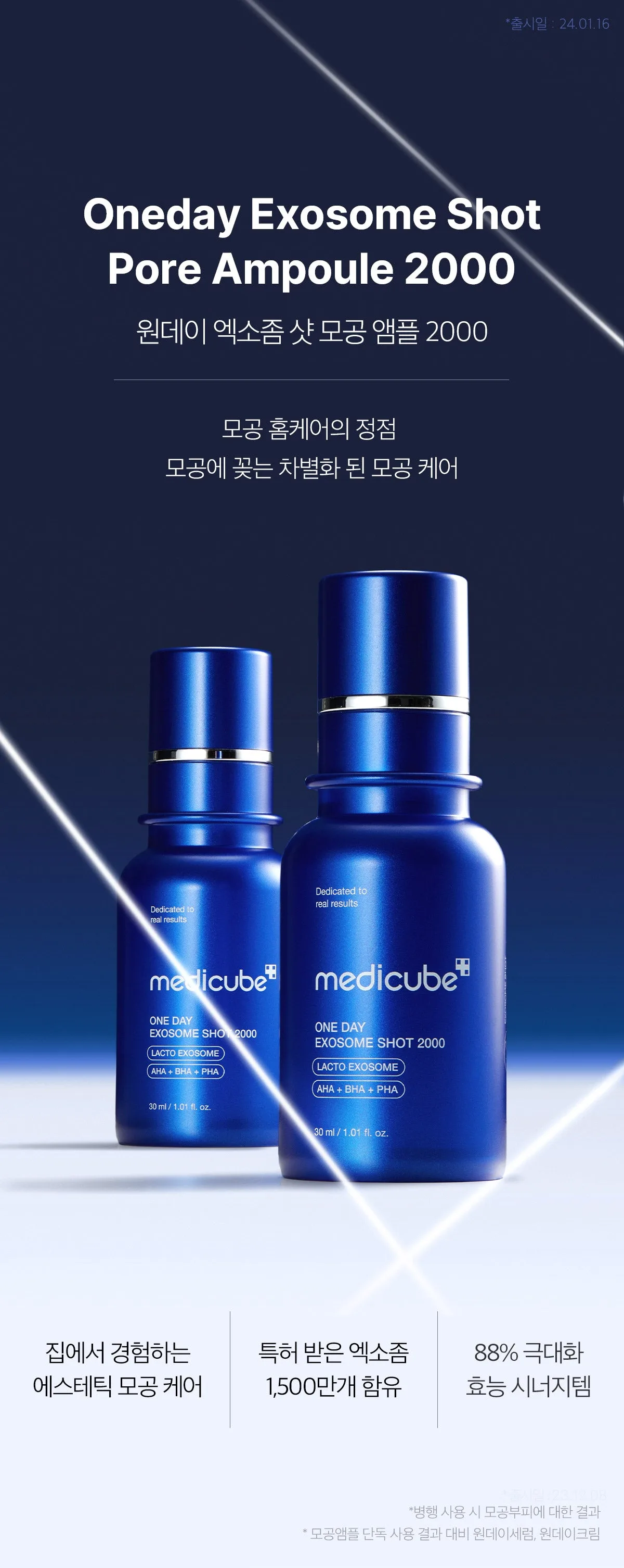 Designed to deliver a precise, sharp shot of exosomes deep into the pores, Medicube’s One Day Exosome Shot 2000 is engineered for maximum pore tightening effect. By combining exosomes with this unique delivery system, it captures the essence of aesthetic-grade pore tightening, offering: