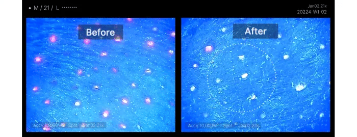 Step 1: Removing clogged dead skin cells that block pores: Dissolves clogged dead skin cells to clean the surface of pores.