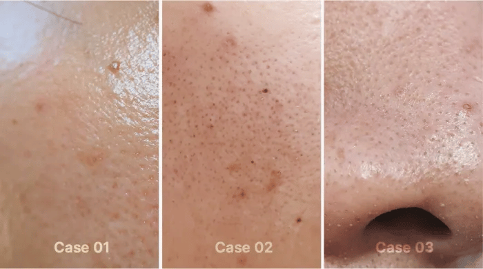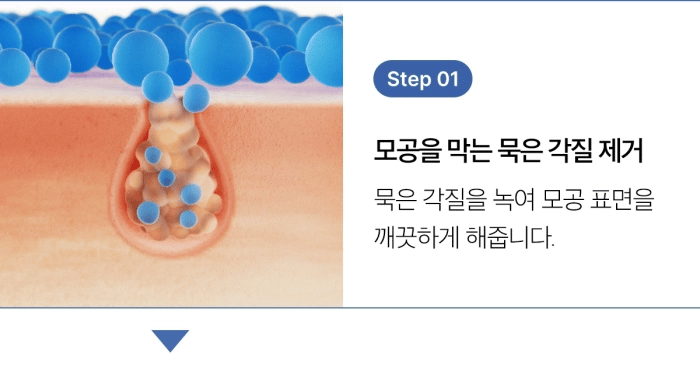 Step 1: Removing clogged dead skin cells that block pores: Dissolves clogged dead skin cells to clean the surface of pores.