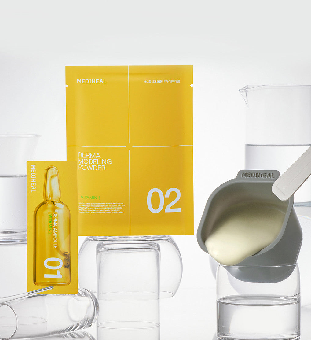 Experience the transformative power of the MEDIHEAL Derma Modeling Powder, a skincare innovation designed to address your skin concerns effectively. This unique product combines a high-efficiency ampoule with vitamin liposome micro-particles and a modeling powder for comprehensive skincare.