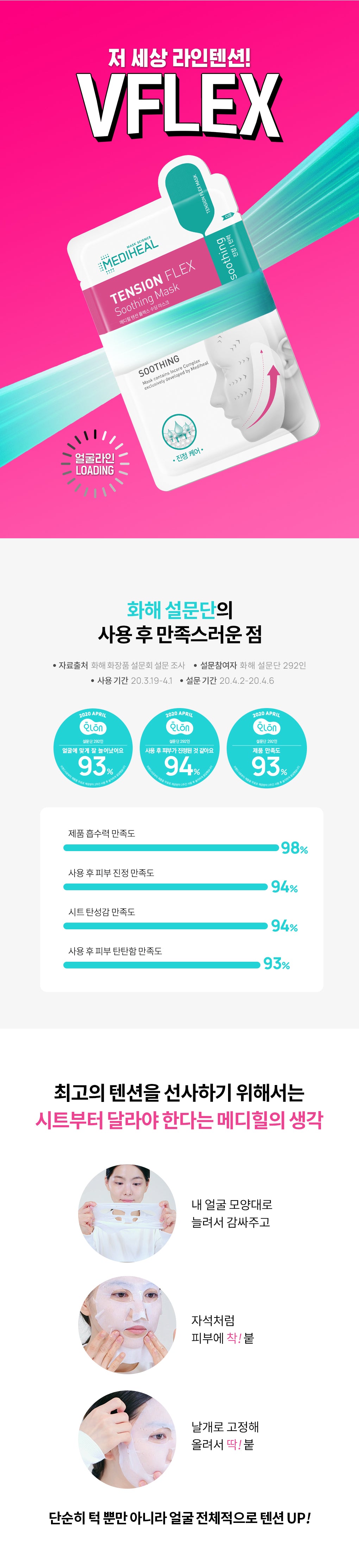 Hey there! I recently tried the Mediheal Tension Flex Soothing Mask, and OMG, it’s a total game changer. First off, the fit is spot on – no sliding around while you relax. It’s got this neat V-cut thing that actually does wonders for your face; I felt like my cheekbones were popping in just one use! After peeling it off, my skin looked fresh as if I’d had eight hours of sleep (you know how rare that feels). Plus, my jawline was sharp enough to cut cheese – LOL. Definitely recommending this gem from Toronto vibes!