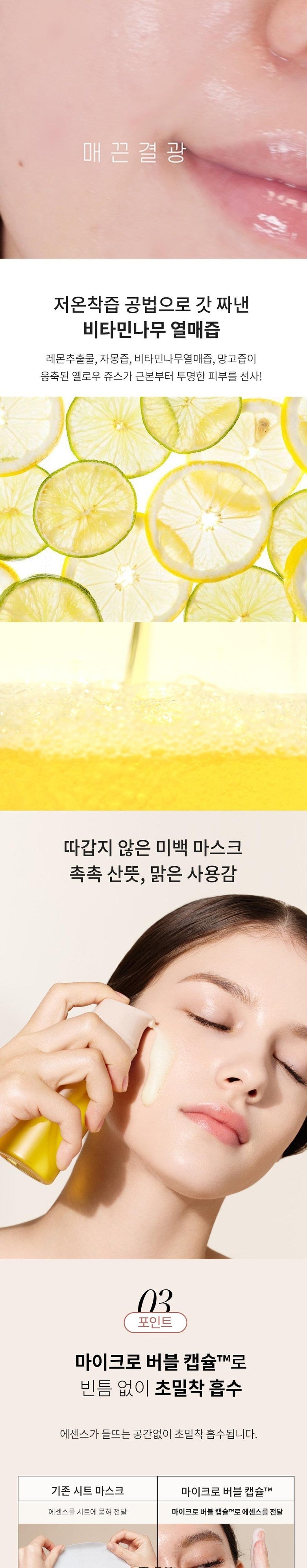 Developed over two years, this mask features patented technology (Patent No. 10-2621138) called Microbubble Capsule™. The tiny, concentrated bubbles deliver active ingredients deep into the skin for faster and more effective absorption compared to traditional sheet masks.