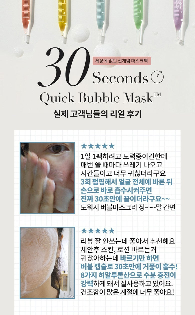 This product introduces a revolutionary concept in skincare. Unlike traditional sheet masks or wash-off masks, this innovative mask pack requires no sheet and no rinsing. It’s a super easy, 30-second quick bubble mask pack that offers convenience and results in one simple step.