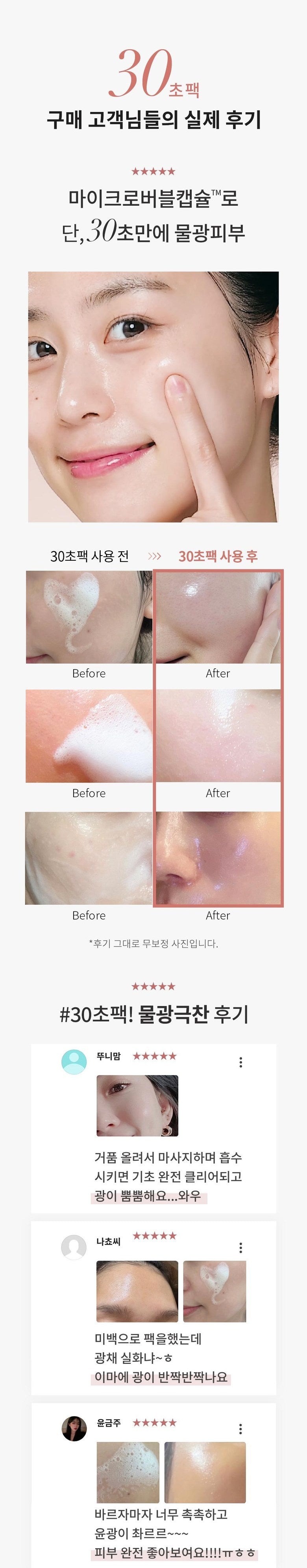 Developed over two years, this mask features patented technology (Patent No. 10-2621138) called Microbubble Capsule™. The tiny, concentrated bubbles deliver active ingredients deep into the skin for faster and more effective absorption compared to traditional sheet masks.