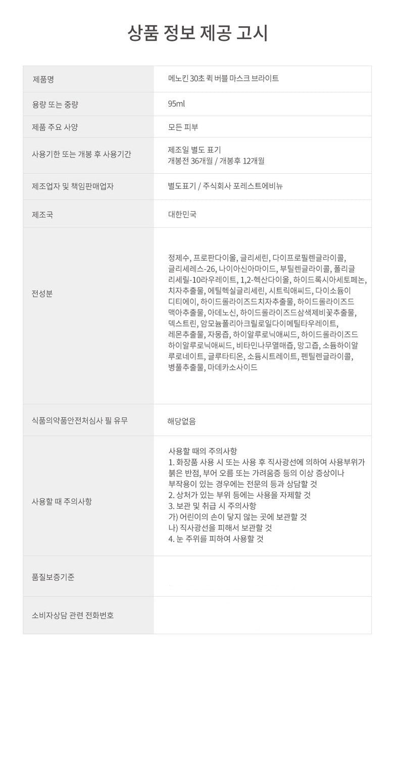 MENOKIN Bright 30 Seconds Quick Bubble Mask 95ml
