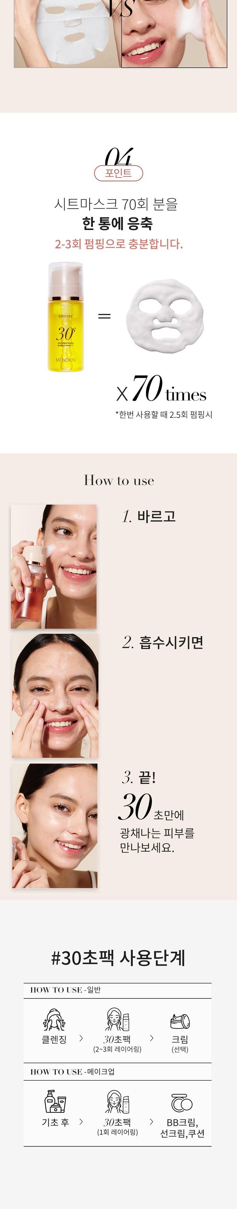 I’ve recently tried the MENOKIN Bright 30 Seconds Quick Bubble Mask, and I’m impressed with how efficient it is. The Microbubble Capsule™ technology really works—within just 30 seconds, my skin felt incredibly refreshed and had a noticeable glow. I often struggle to find time for skincare due to my busy schedule, but this mask offers an effective solution without any rinsing needed afterward. It delivers results comparable to traditional masks but in a fraction of the time, which suits me perfectly! It’s truly like getting 70 sheet masks in one bottle.