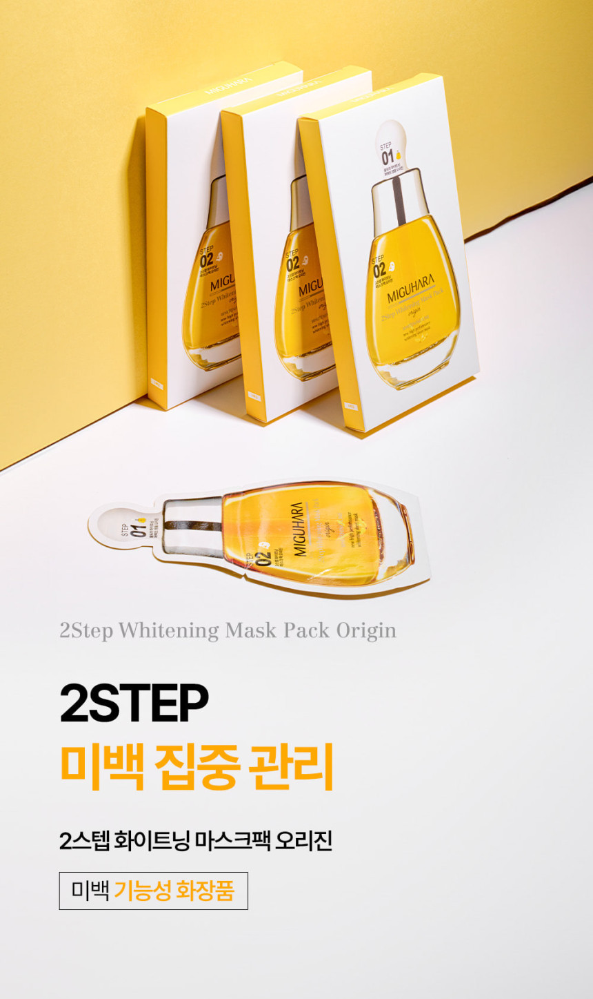 MIGUHARA Big 3 Step Whitening Mask Pack Origin – Achieve Luminous, Even-Toned Skin (28.7ml x 5 Sheets x 2 Boxes)