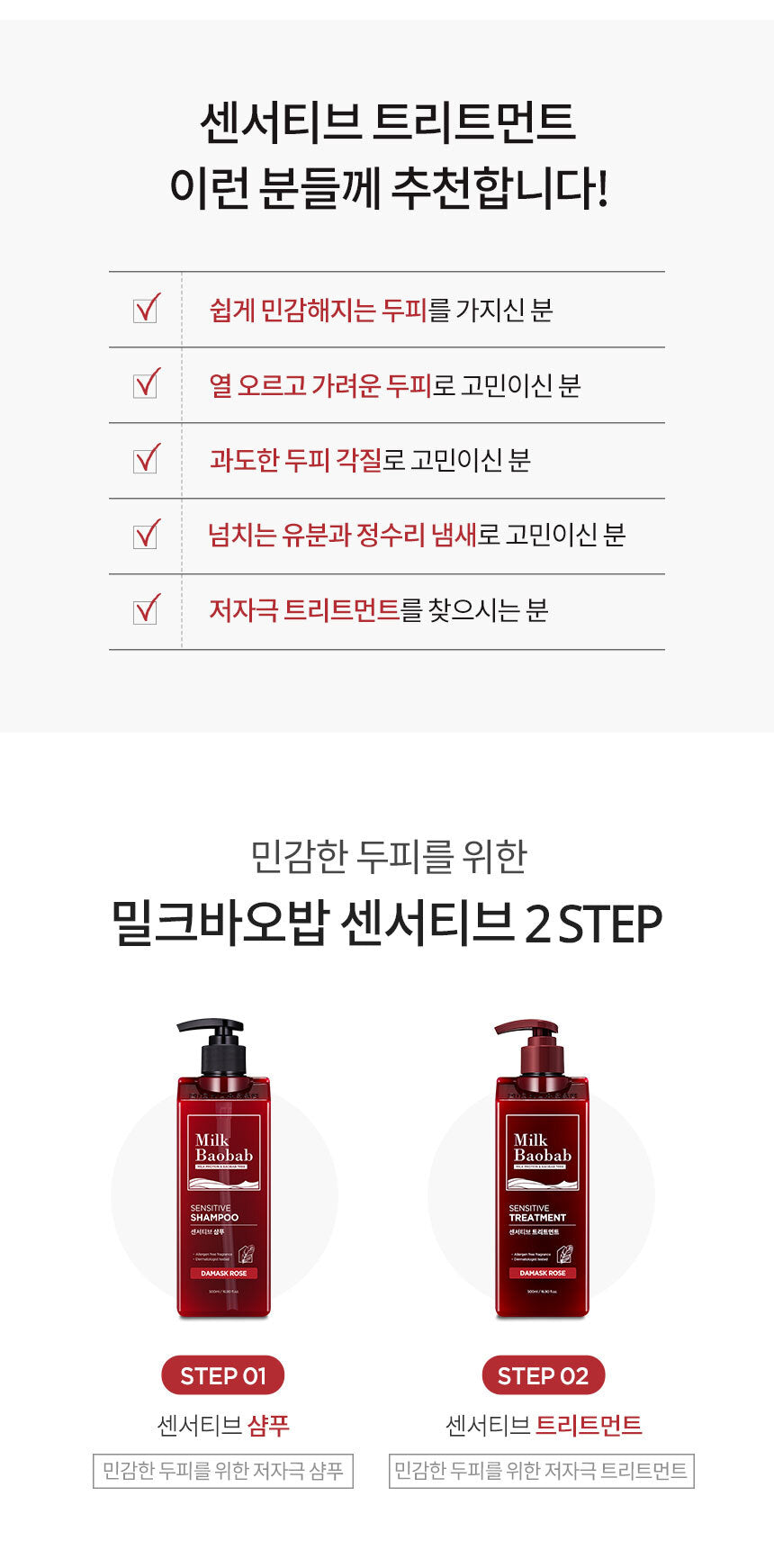 - STEP 02: Sensitive Treatment – Our hypoallergenic treatment deeply nourishes and soothes, completing your sensitive hair care regimen.