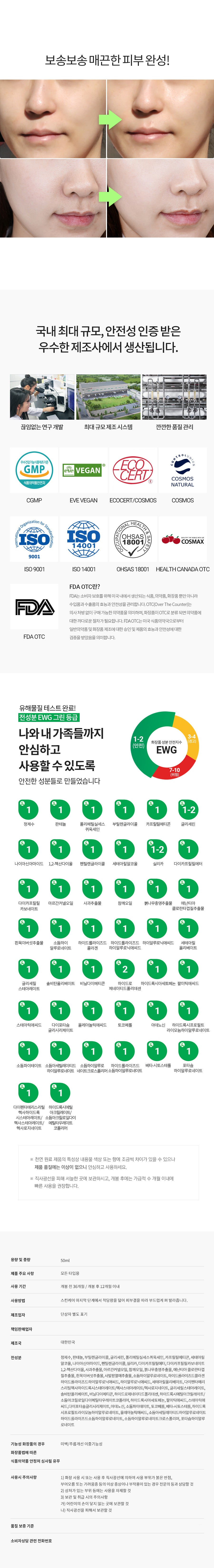 Proudly crafted by one of Korea’s premier manufacturers, renowned for its extensive scale and commitment to safety, our product is a testament to quality and effectiveness. With all ingredients meeting the EWG GREEN grade standards, you can trust in the purity and safety of our formula.