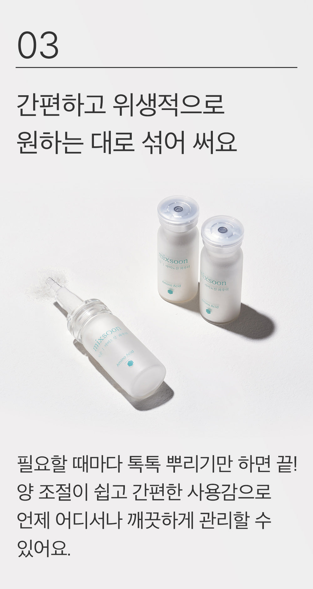 - For optimal dissolution, combine with a hyaluronic acid serum. Should any amino acid powder remain undissolved, gently massage it onto your skin until fully absorbed.