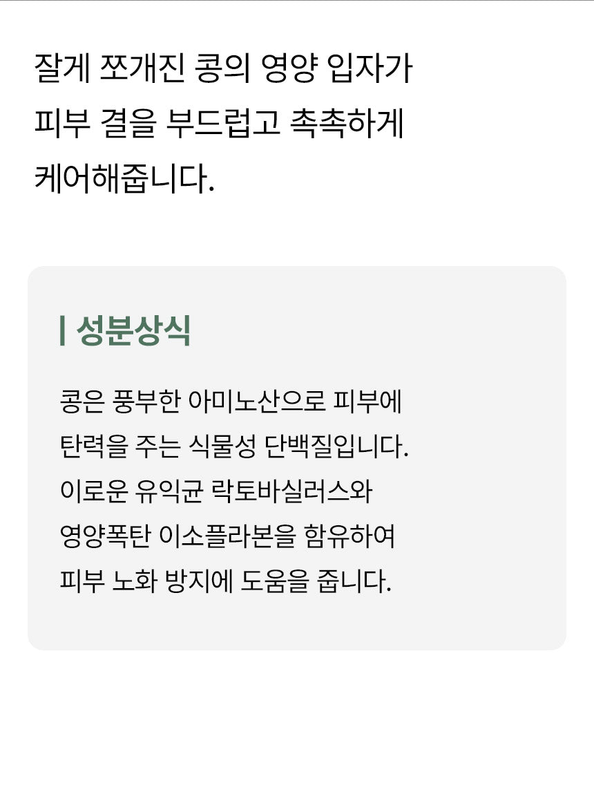- Deep Nourishment: Infused with a powerful blend of seven types of high-protein soybean extracts, including kidney bean seed extract, that softly and deeply nourish the skin.