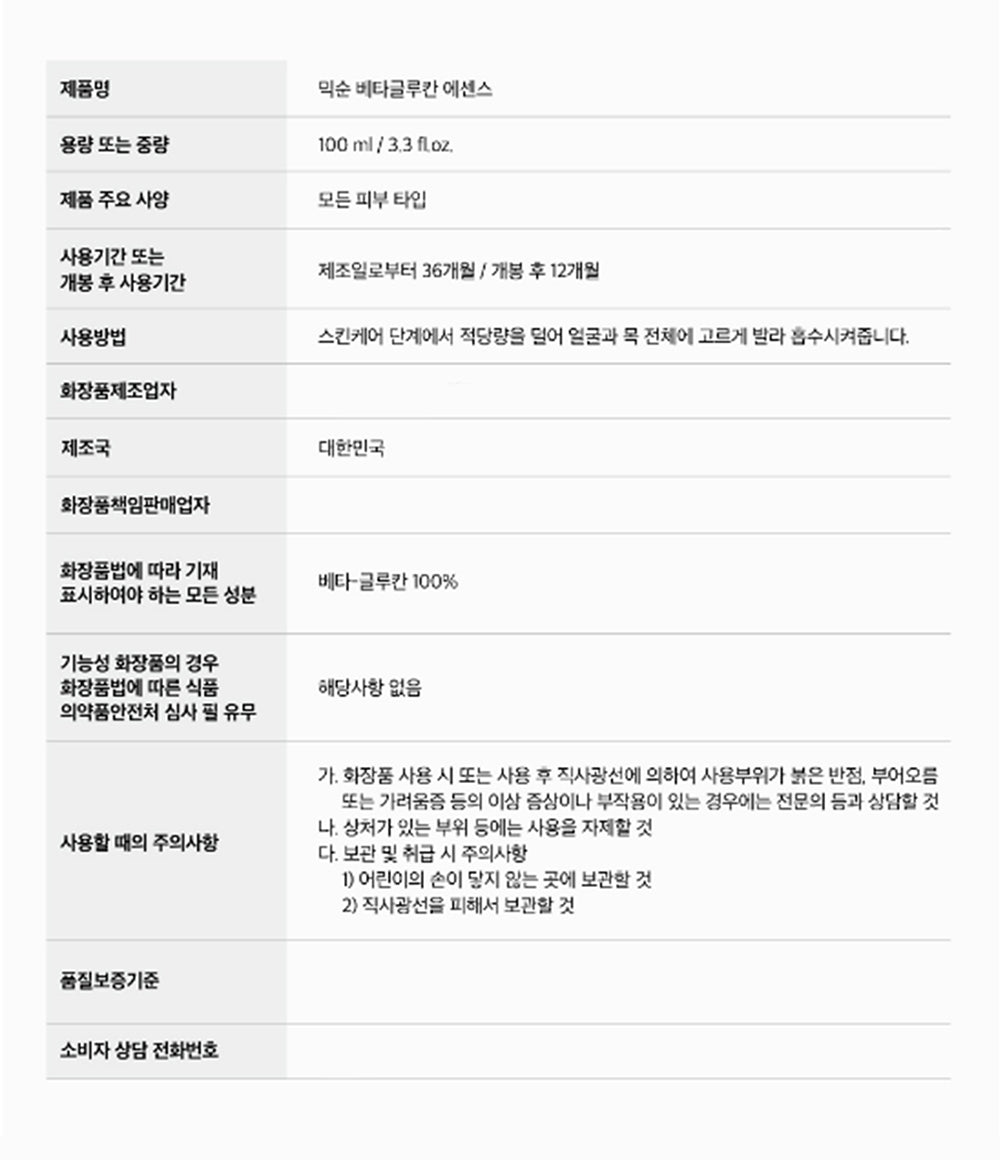 With a formula comprised of 100% Beta-glucan, this undiluted essence contains only key ingredients, offering a straightforward approach to skin hydration. We’ve completed rigorous skin irritation and safety tests, ensuring our product is gentle yet effective for all skin types.