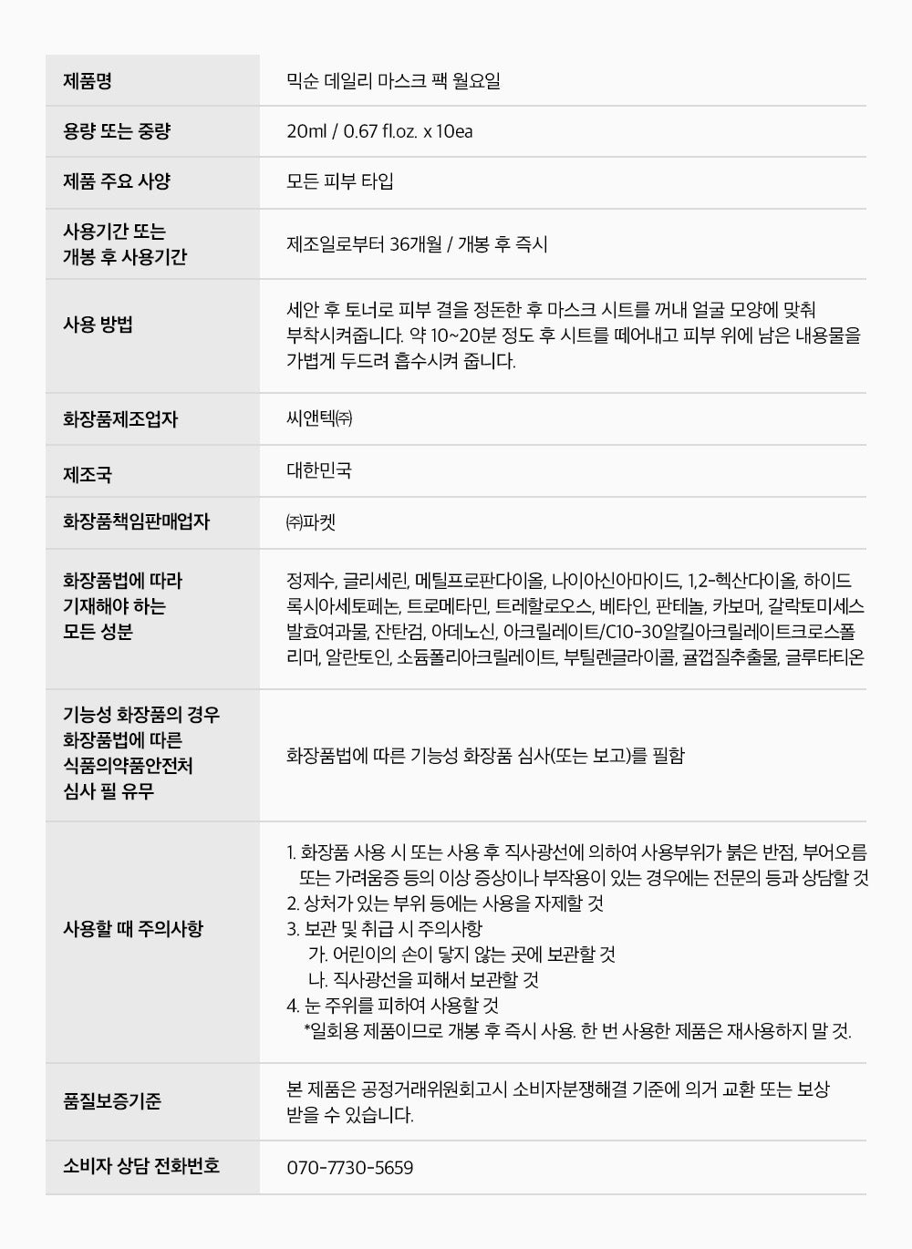 mixsoon Daily Mask Pack Monday 20ml*10ea