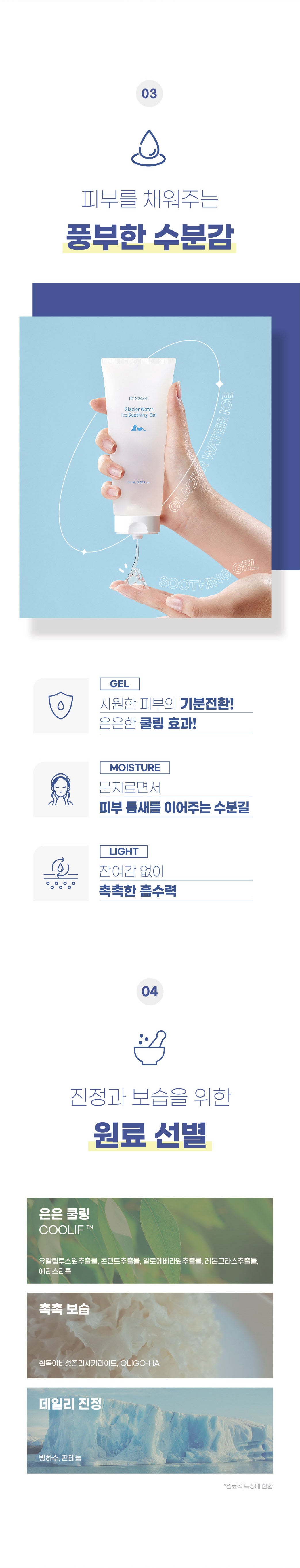 Experience a unique blend of cooling and soothing sensations with our moisture-rich gel, infused with glacial water for ultimate skin hydration.