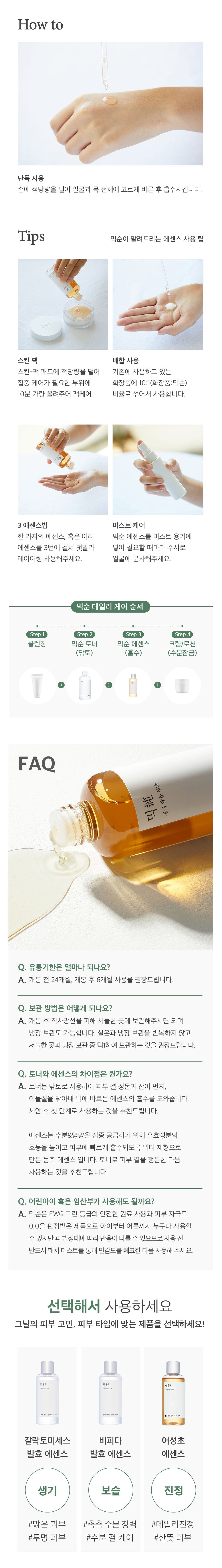 私は最初、Mixsoonのホットウィニア・コルダタエッセンスに半信半疑でした。本当に敏感肌が落ち着く効果があるのでしょうか。しかし、この100mlボトルを使ってみると、その速やかな浸透力には驚きました。ペースト状ではなく軽い水っぽい感じでありながら、すぐにうるおいます。それは皮膚ストレスによる赤みまで和らげてくれたような気がします。地元生産者から得られる純粋な成分ということで安心感も持てますね。この使用経験を通じて、本物の天然スキンケア製品なのだと実感しました。