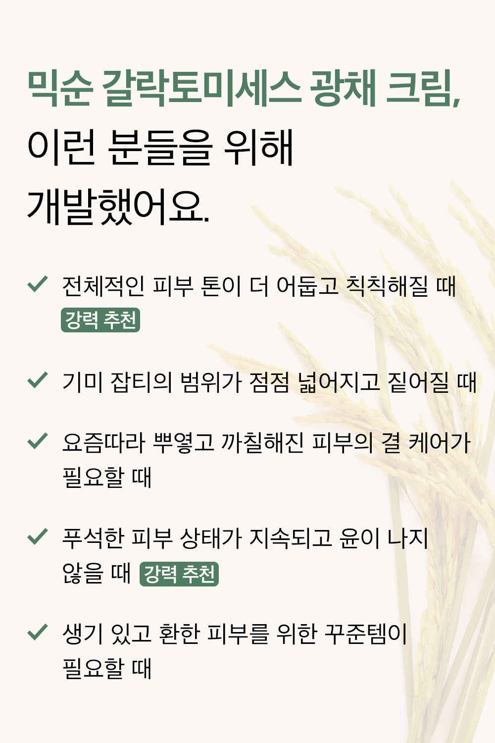 - Need for skin texture care.