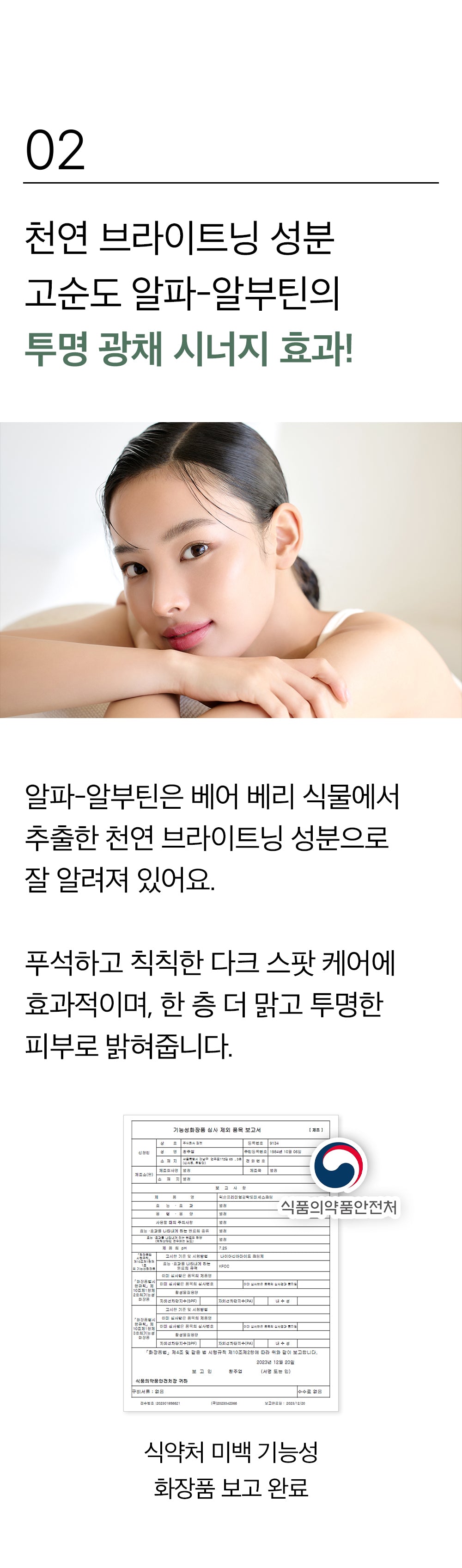 - Certified as a whitening functional cosmetic by the Ministry of Food and Drug Safety.