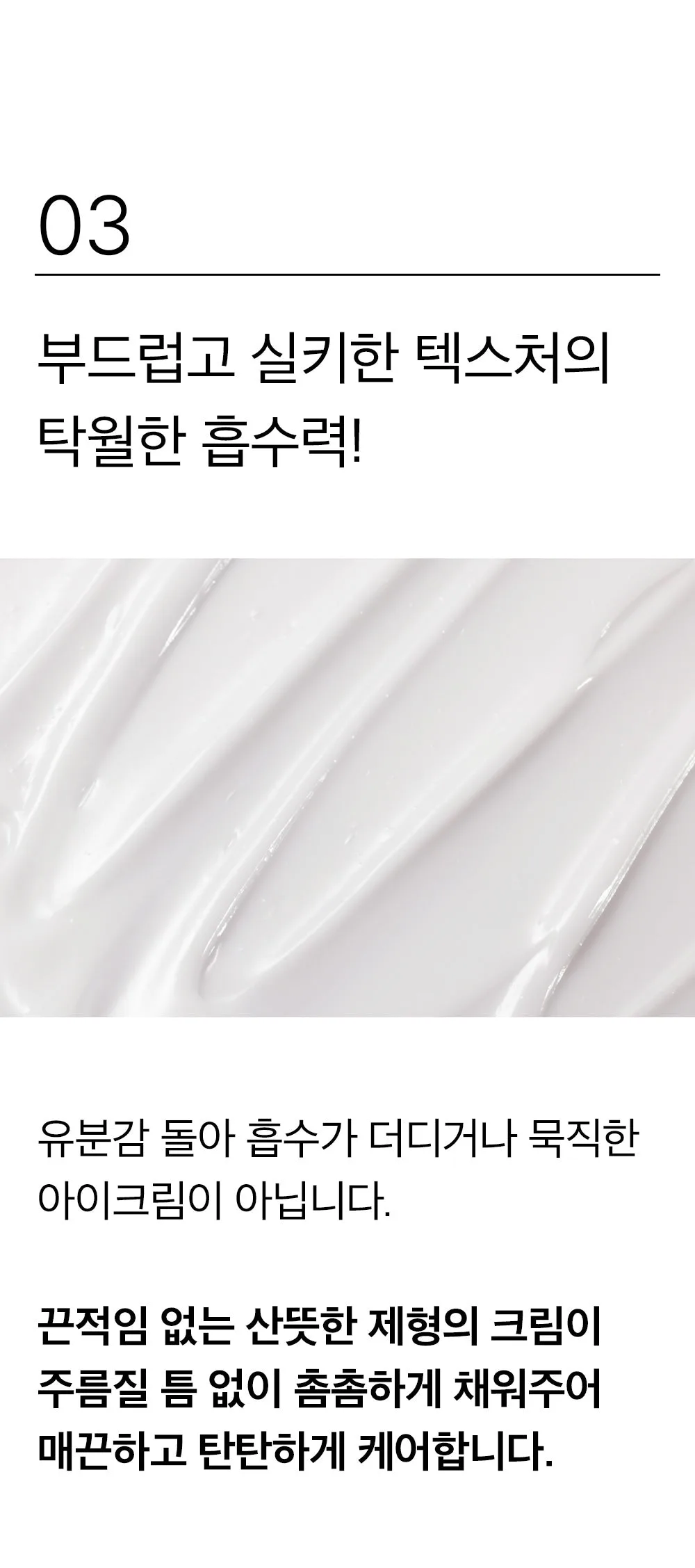 This eye cream is not just for wrinkle care; it also brightens and evens out the skin tone around your eyes. The skin in this area is notably delicate, being three times thinner than that on your forehead and lacking in sebaceous glands. This makes it more prone to dryness and wrinkle formation. Regular care is crucial to prevent and improve wrinkles.