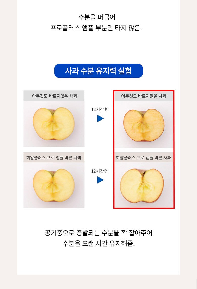 The Hyal Plus Pro Ampoule’s efficacy is not just claimed but proven through extensive testing, including bread and apple moisture retention tests, demonstrating its exceptional ability to lock in moisture.