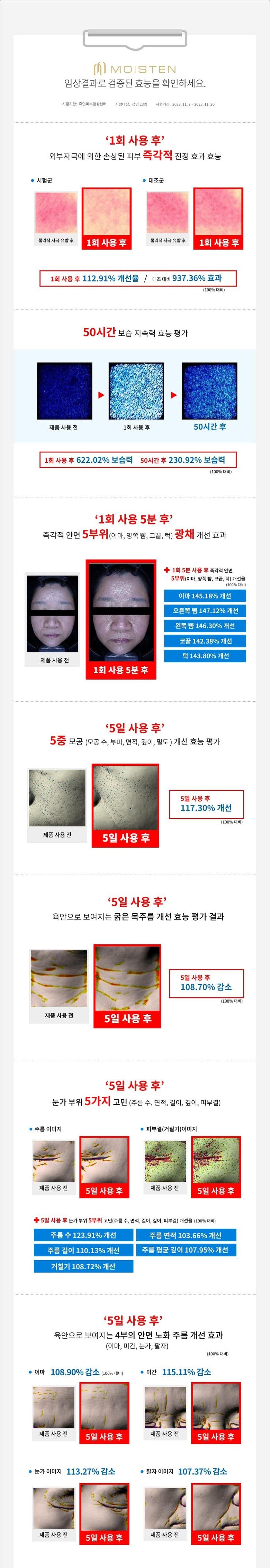 - Skin Transformation: Notable for its immediate facial glow enhancement and visible reduction in pores, neck wrinkles, and improvements in skin texture around the eyes, as well as wrinkles on the forehead, between eyebrows, and around the eyes and nasolabial folds within just 5 days.