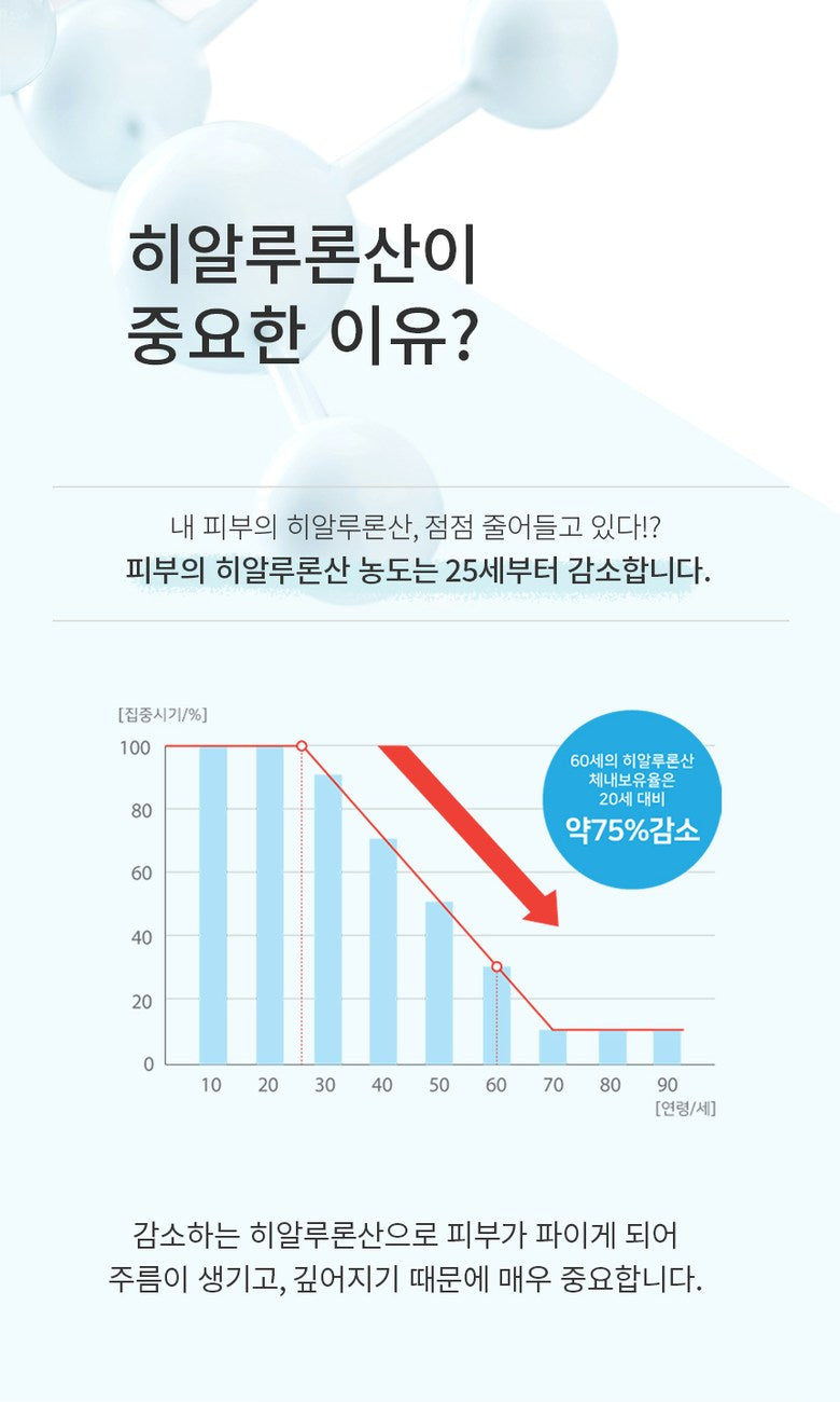 - Ultra-Low Molecular Hyaluronic Acid: Tackles the natural decrease in hyaluronic acid that begins at the age of 25, effectively preventing and reducing the deepening of wrinkles.