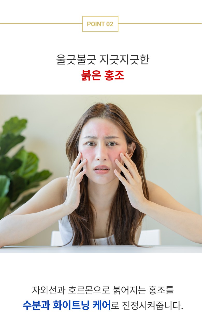 - Soothes and Whitens: Effectively soothes redness caused by UV rays and hormones, with intensive whitening care provided by niacinamide for improved skin tone and moisture.