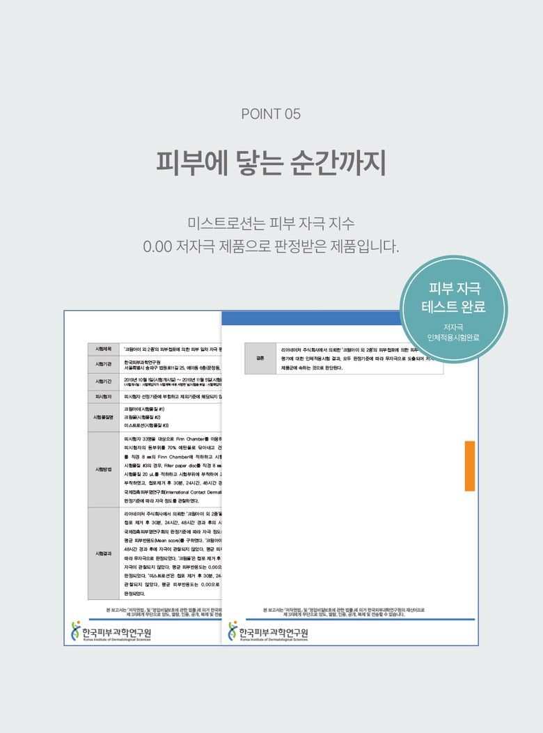 Skin irritation reactivity was measured at 0.00, confirming the safety and gentleness of our products through tests by domestic professional institutions.