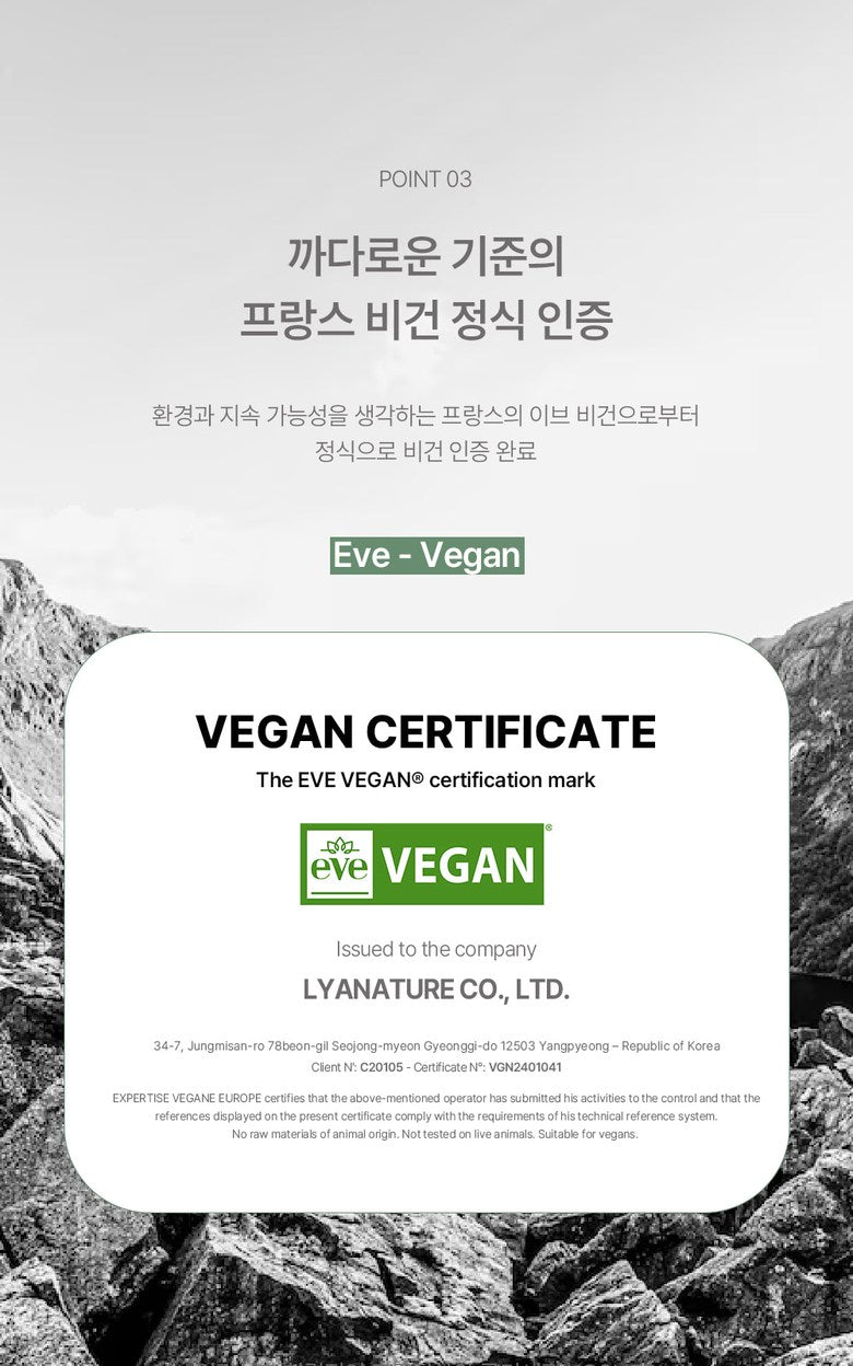 Our cosmetics have undergone a strict screening process and have been certified vegan by France’s Eve Vegan.