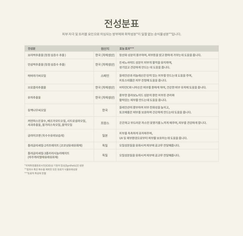 - Plant Extracts: Includes yuzu extract, broccoli extract, ginseng sprout extract, and barley sprout extract for skin recovery and antioxidant benefits.