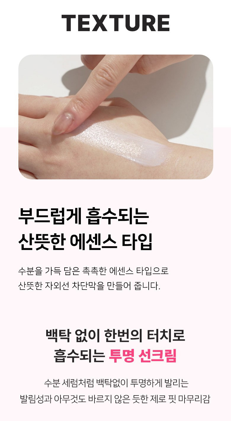 - Refreshing water-essence texture that absorbs quickly
