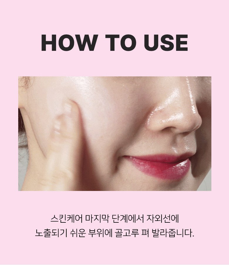 At the last step of your skincare routine, apply evenly to areas exposed to UV rays, such as the face and neck. Reapply as needed.