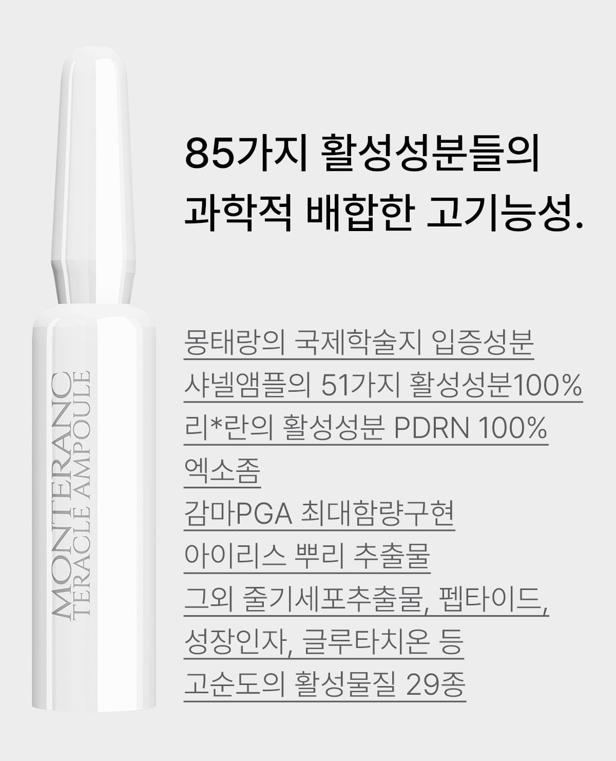 MONTERANC Teracle Ampoule features an advanced blend of 85 active ingredients, meticulously balanced for optimal efficacy. Key components include: