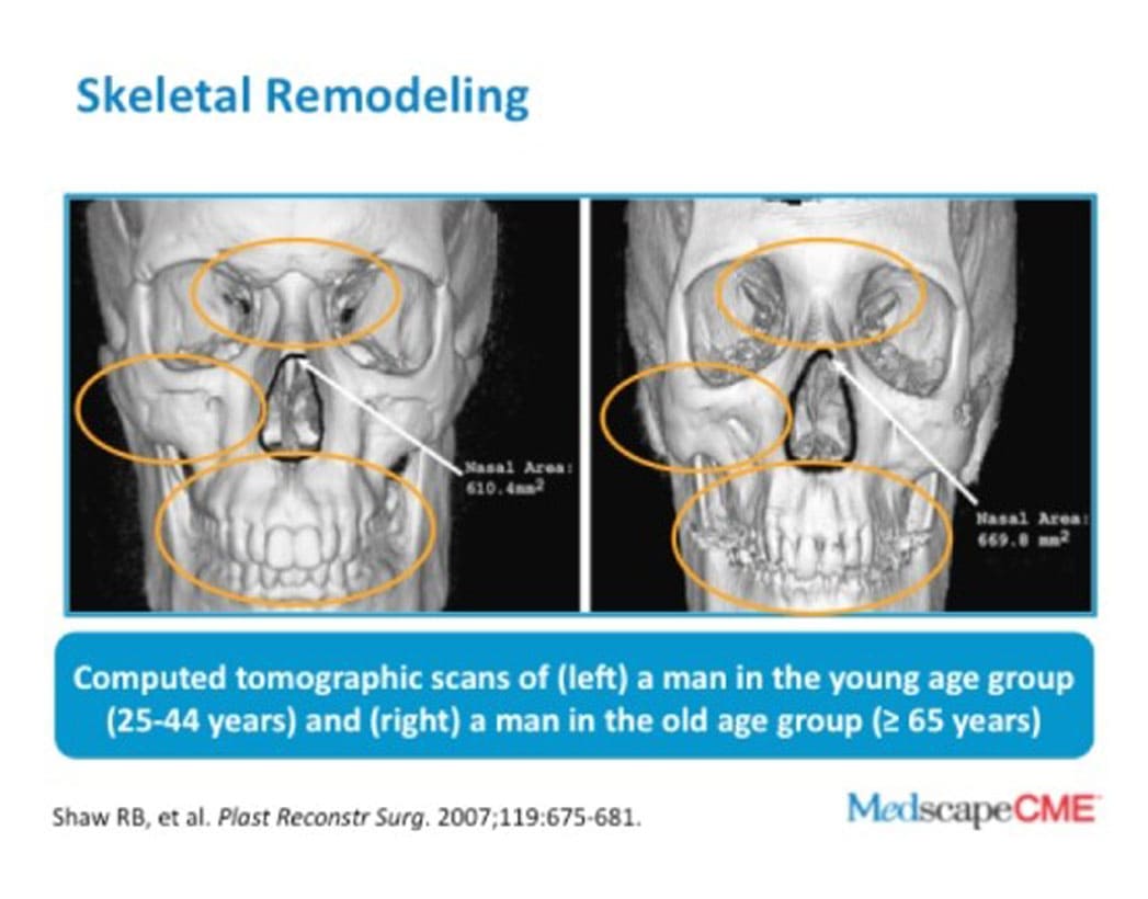 - Studies, including those from Stanford Medical Center, show that as we age, the structure of our facial bones changes, causing shifts in contours, particularly around the eye sockets and cheekbones.
