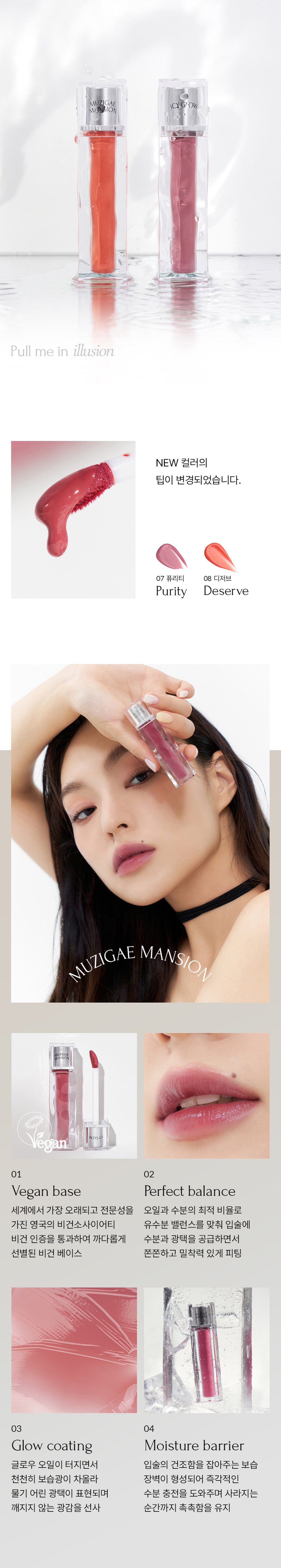 MUJIGAE MANSION, a brand that stands out in the world of vegan cosmetics, proudly presents its third collection, Icy Glow. This line distinguishes itself with a glow tint inspired by the subtle beauty of ice cubes. Icy Glow is acclaimed as the most radiant and exquisite range among MUJIGAE MANSION’s collections, designed to bestow a moist, dewy look to your lips, akin to the allure of gently thawing ice.
