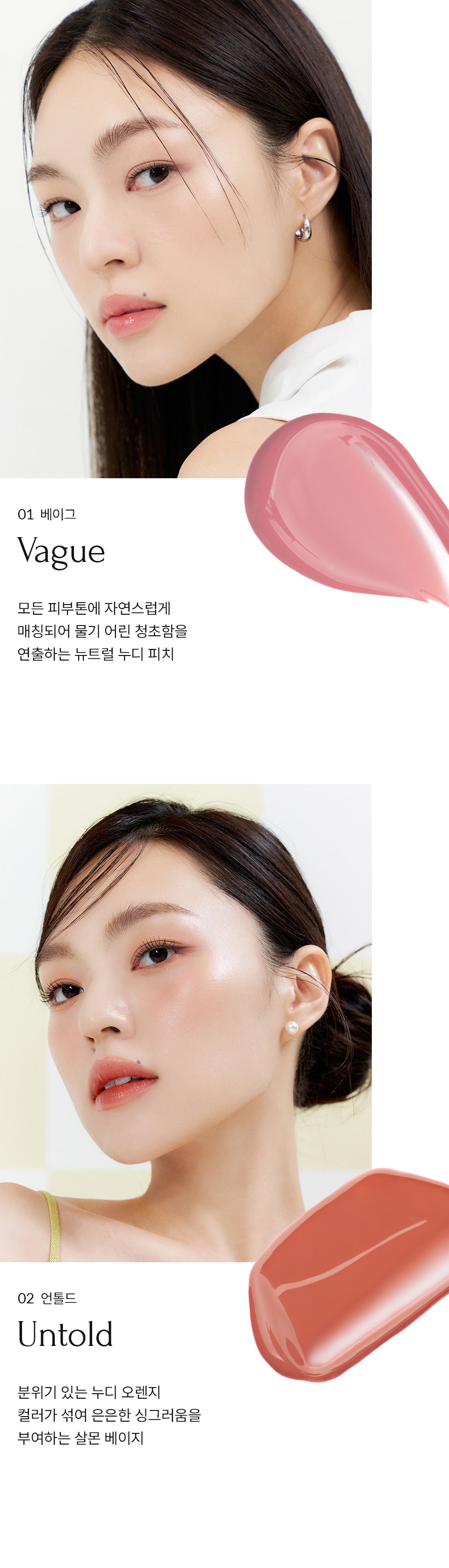 - 01 Vague: A neutral nude peach shade that blends seamlessly with any skin tone, radiating dewy purity.