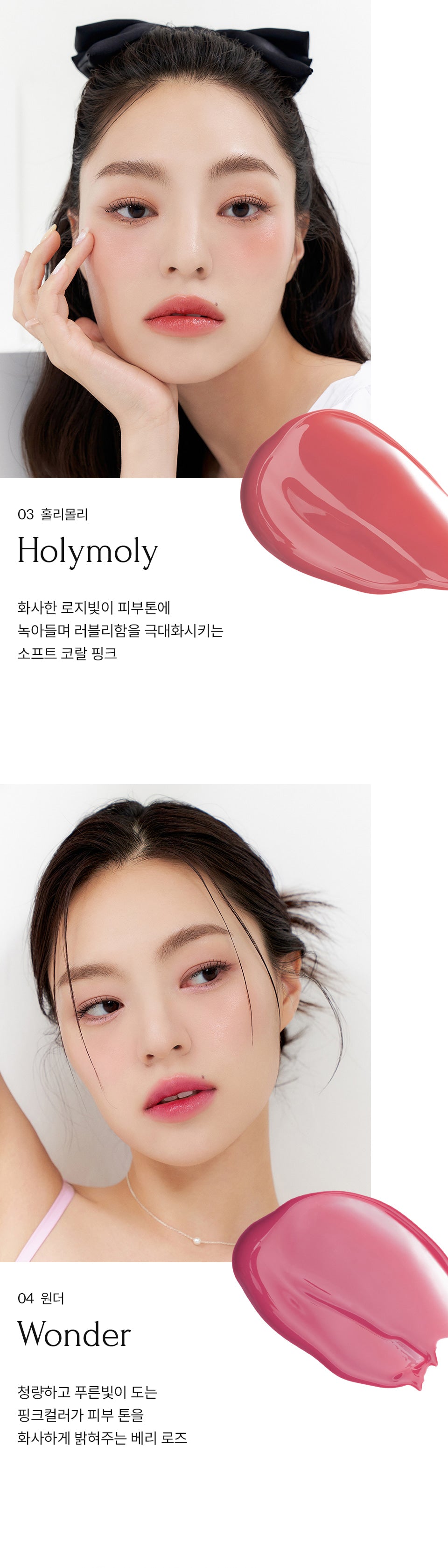 - 03 Holymoly: A stunning rosy tone that harmonizes with your skin, offering a soft coral pink hue to enhance your charm.