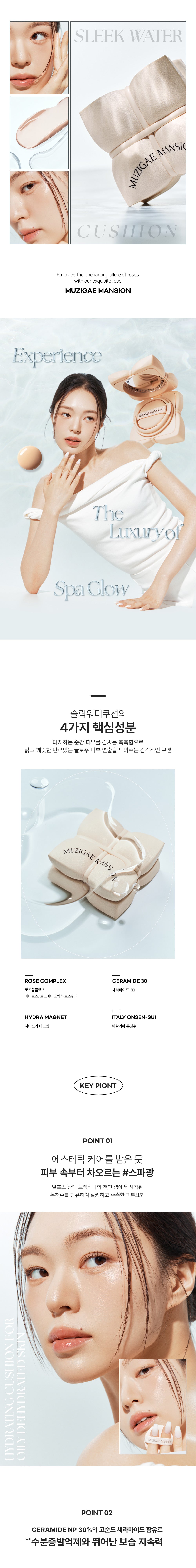 The MUZIGAE MANSION Sleek Water Cushion has truly transformed my makeup routine. With the rose complex—comprising Vita Rose and Rose Biotics—I found that it not only provides excellent coverage but also leaves my skin feeling incredibly hydrated. After using it for a few weeks, I noticed my complexion looked fresher and more radiant. The infusion of thermal water from Italy’s Onsen-Sui gives an added refreshing sensation upon application, making it perfect for daily wear. Plus, the lightweight texture means no heaviness throughout the day; instead, I’m left with a natural glow.