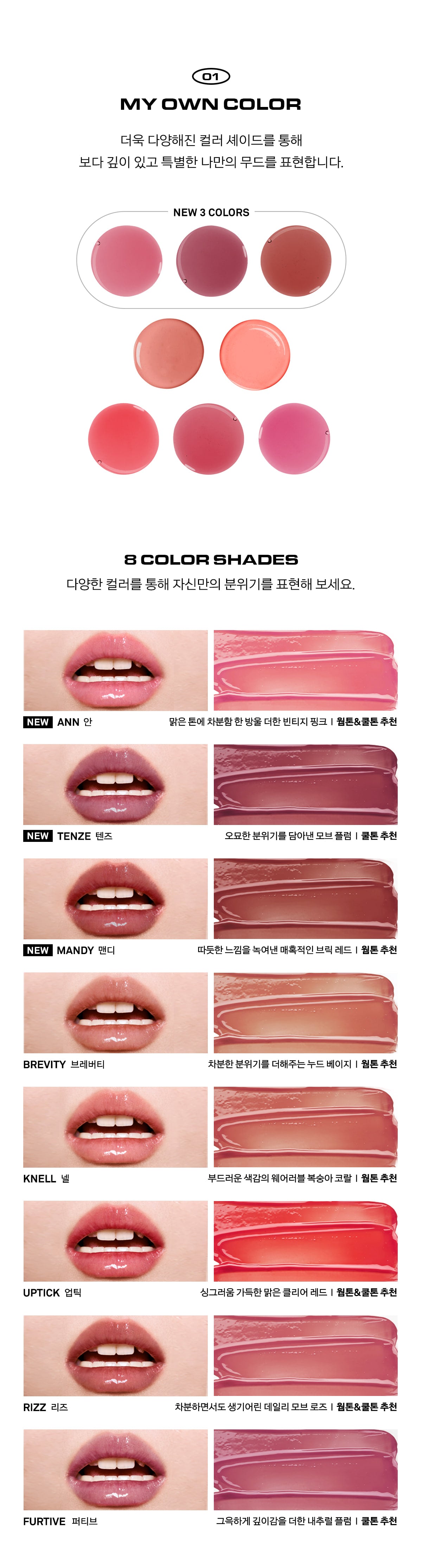 Experience a melting, ultra-thin glow texture that adheres comfortably to your lips. Say goodbye to stickiness and sagging—the gloss delivers a lightweight, seamless finish.