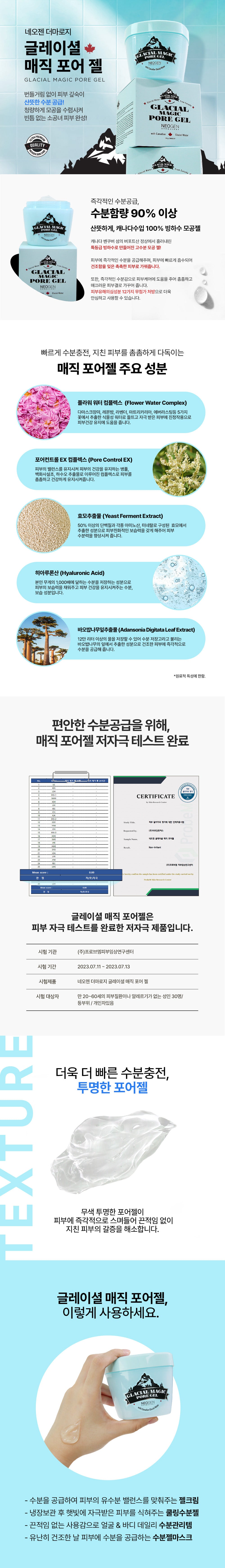 Refreshing, 100% glacier water pore gel imported from Canada