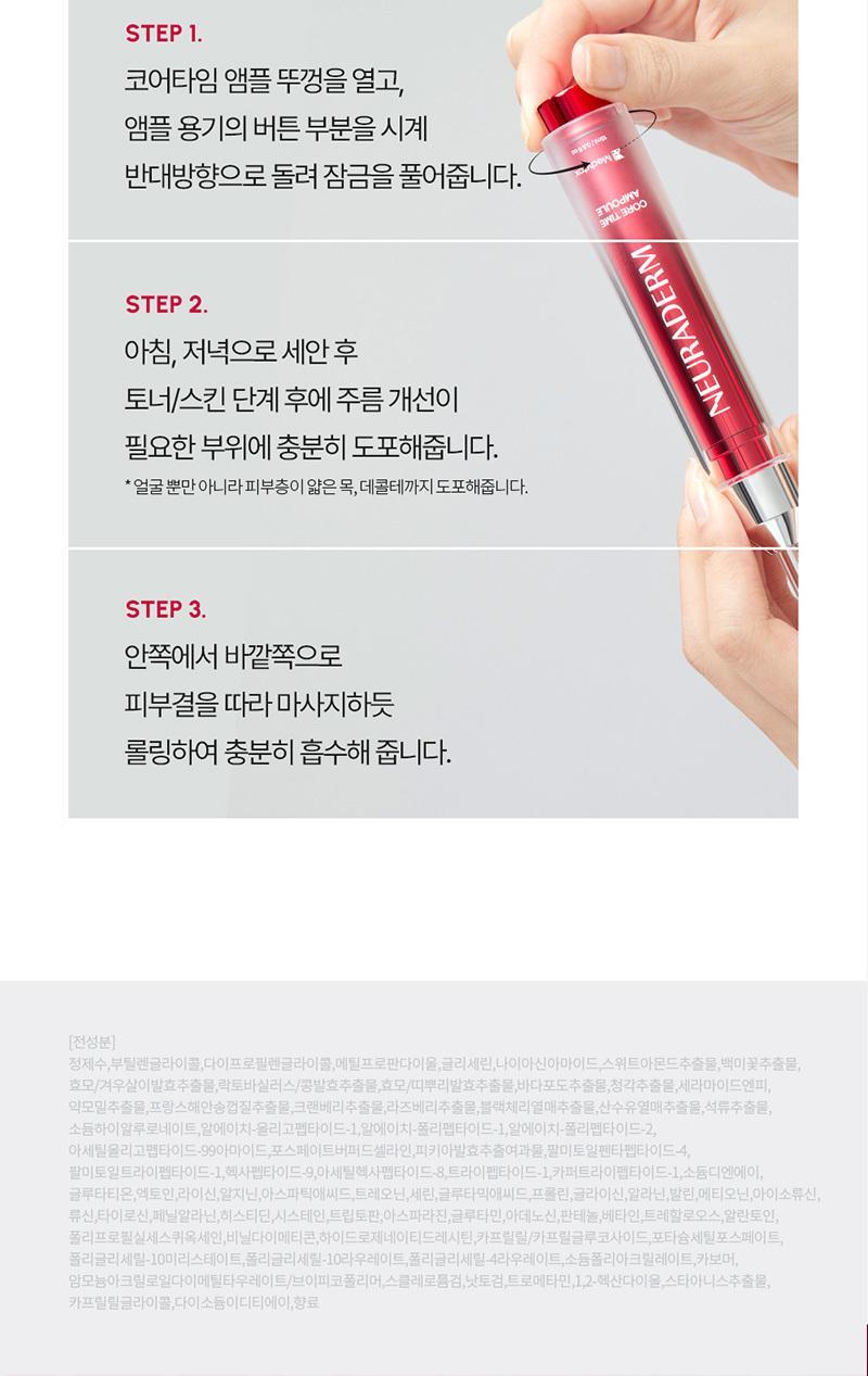 - Apply: After cleansing your face in the morning and evening, apply the ampoule to areas needing wrinkle improvement, following the toner/skin care step.