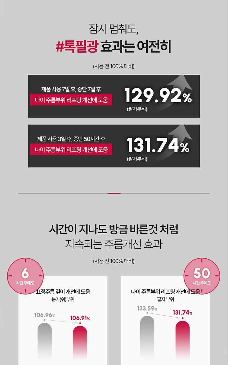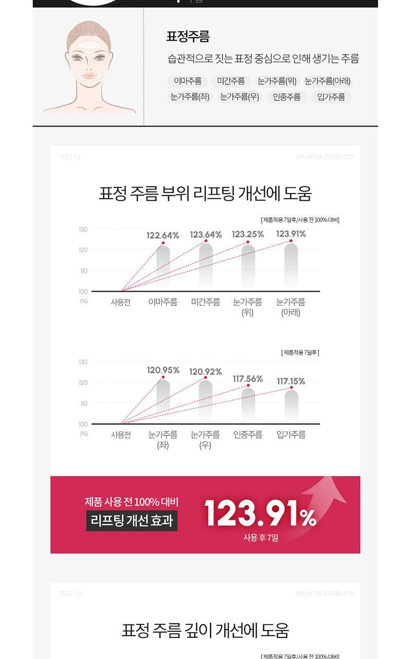 These results show a noticeable lift in the age wrinkle area by 131.74% and a remarkable 106.91% improvement in expression wrinkle depth within just 6 hours of application.