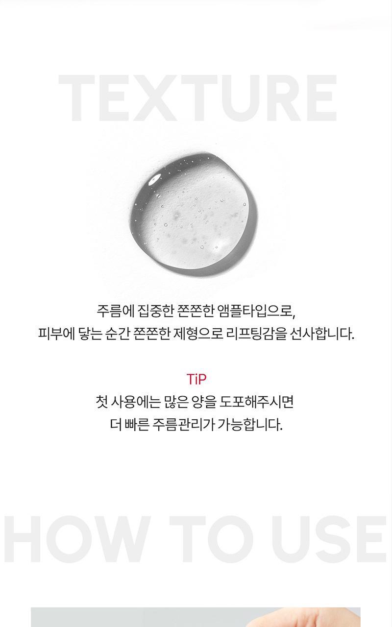 - Apply: After cleansing your face in the morning and evening, apply the ampoule to areas needing wrinkle improvement, following the toner/skin care step.