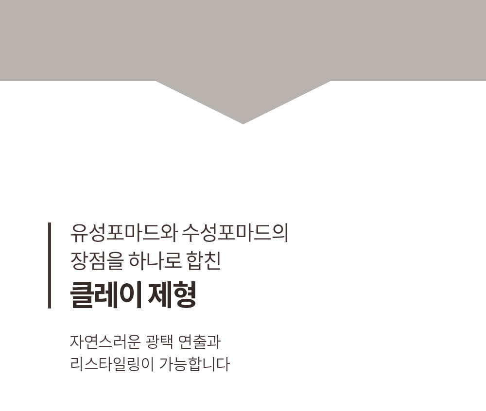 The advantages of oil-based and water-based pomade are combined into one clay formula, allowing for a seamless gloss effect and restyling.