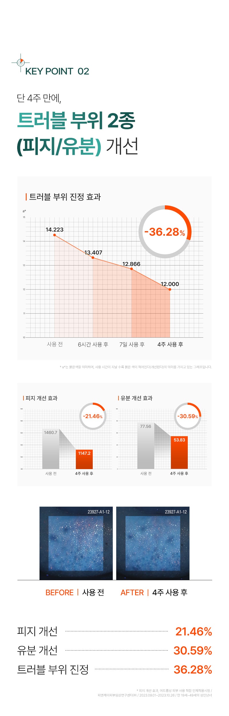 - Long-Term Improvement: In just 4 weeks, it significantly reduces sebum and oiliness in troubled areas.